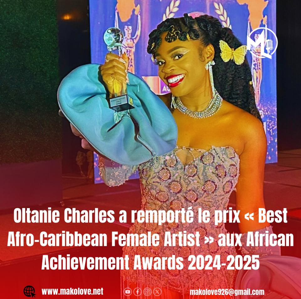 Oltanie Charles a remporté le prix « Best Afro-Caribbean Female Artist » aux African Achievement Awards 2024-2025