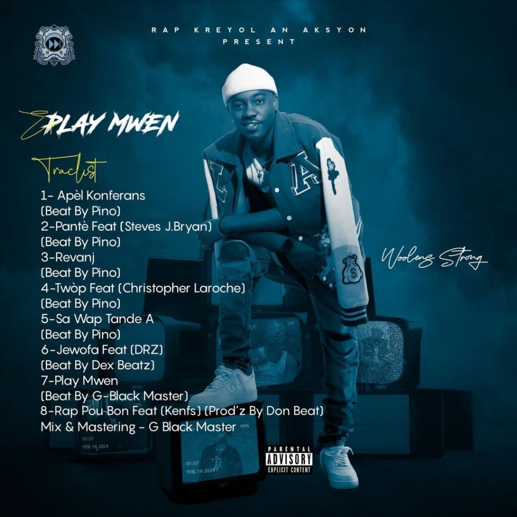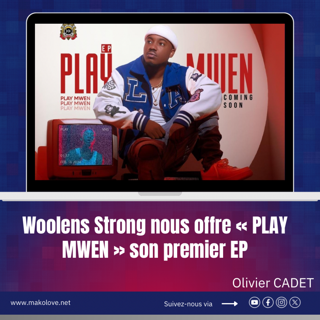 Pour célébrer en grande pompe son anniversaire, le rappeur Woolens Strong de son nom de naissance Woleensky ROCHER a publié son premier Extended Play (EP) baptisé « PLAY MWEN », le lundi 17 février 2025. Ce disque gravé de 8 morceaux est disponible sur toutes les plateformes de streaming et de téléchargements.